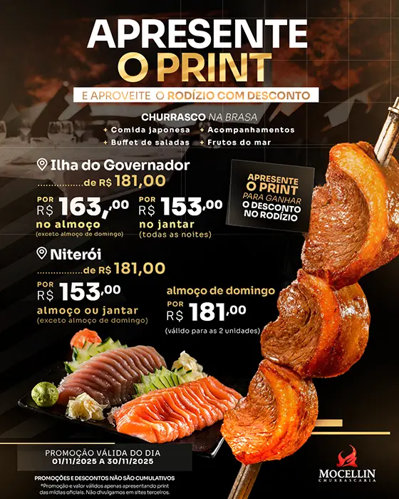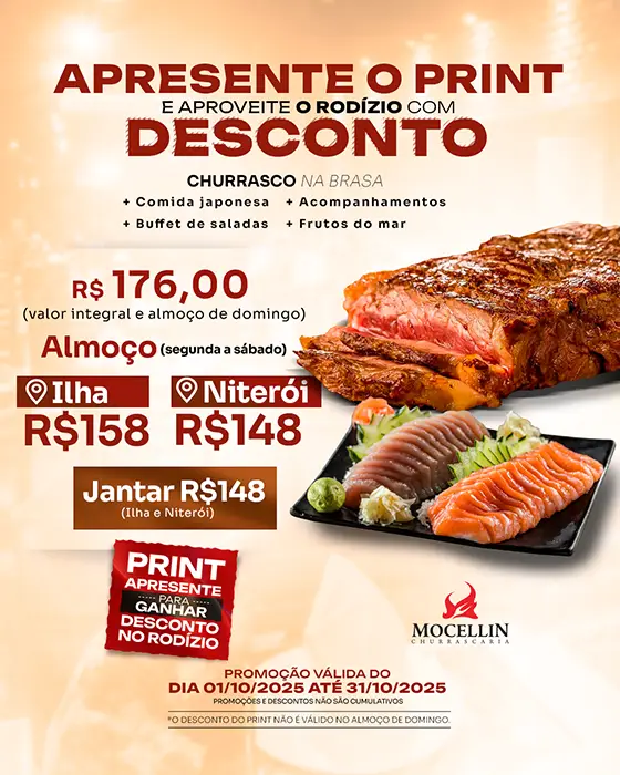 O cuidado com o cliente torna a Mocellin Churrascaria um local acolhedor para famílias, amigos e até reuniões de negócios. A Mocellin Churrascaria está presente na Ilha do Governador e em Niterói, em ambas com estacionamento com manobristas.