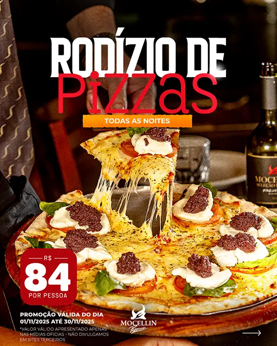 Além disso, o delivery também está disponível todas as noites para atender a região. A qualidade Mocellin está presente em todos os sabores, texturas e ingredientes para garantir momentos especiais na sua noite.